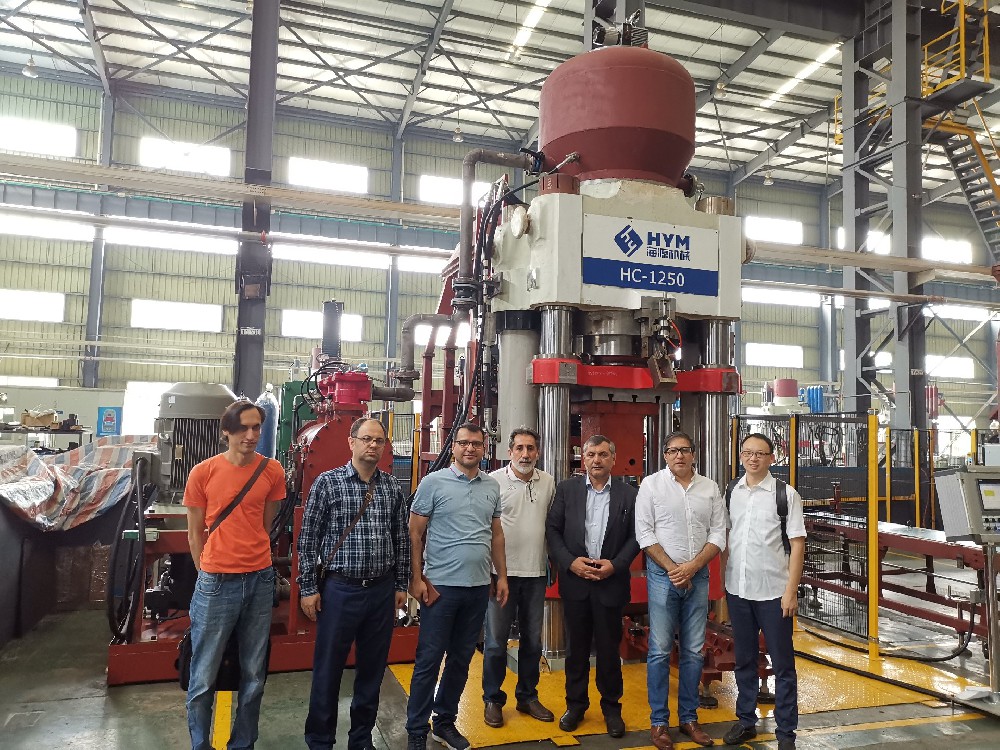 近日,来自中东的两个客户,相继由其厂长携项目负责人及工程师团队到我司分别对各自订单设备(HC2500、HC1250耐火材料液压机)进行厂内整机验收工作,海源智能公司总经理与我司技术人员、生产人员陪同进行。经过全方位测试,产品的各项性能指标均达到合同及技术图纸要求,有些指标甚至超过要求,厂内验收取得了圆满成功。在